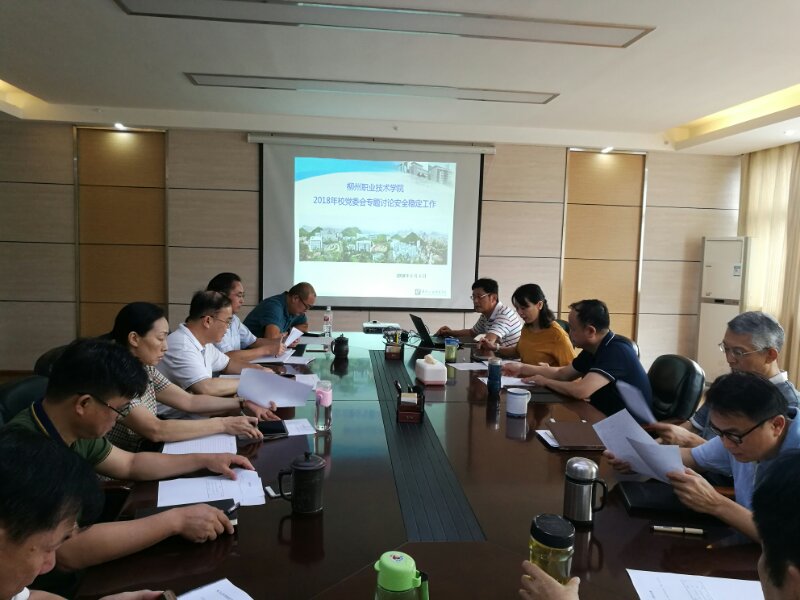 会上,保卫处处长高勇军汇报了学校2018年1月至5月安全稳定工作情况;防范和抵御宗教渗透,反邪教工作以及2018年征兵工作情况 。2018年,学校领导高度重视安全稳定工作,统一部署,周密安排。分管校领导亲自带队检查安全工作,检查组以“零容忍”的态度,对校舍设施,危化品安全管理,食堂、食品卫生,消防设施设备,官塘校区在建工程,治安防范,特种设备安全,体育场馆设施设备等开展认真细致排查,对排查出的安全隐患问题做好台账记录,并及时整改。