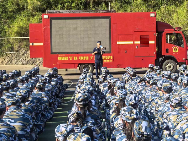 米乐官网组织2025级新生开展消防安全培训暨行军拉练活动