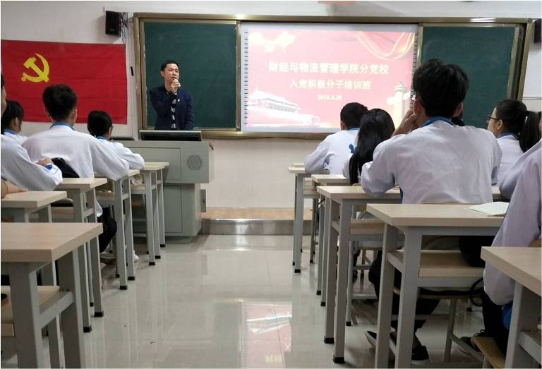 新闻网消息(文/财经与物流管理学院 黎满玲 图/财经与物流管理学院 陈天带)为了加强入党积极分子政治思想的培养教育,明确入党目的,端正入党动机,提高党员发展质量,财经与物流管理学院党总支于2018年4月26日在柳州职业技术学院官塘校区T1-A413教室举办入党积极分子培训班开班仪式。此次培训班共有48名入党积极分子参加,财经与物流管理学院党总支书记韦耀业、学生一支部书记陈卉、学生二支部书记覃洋出席开班仪式。