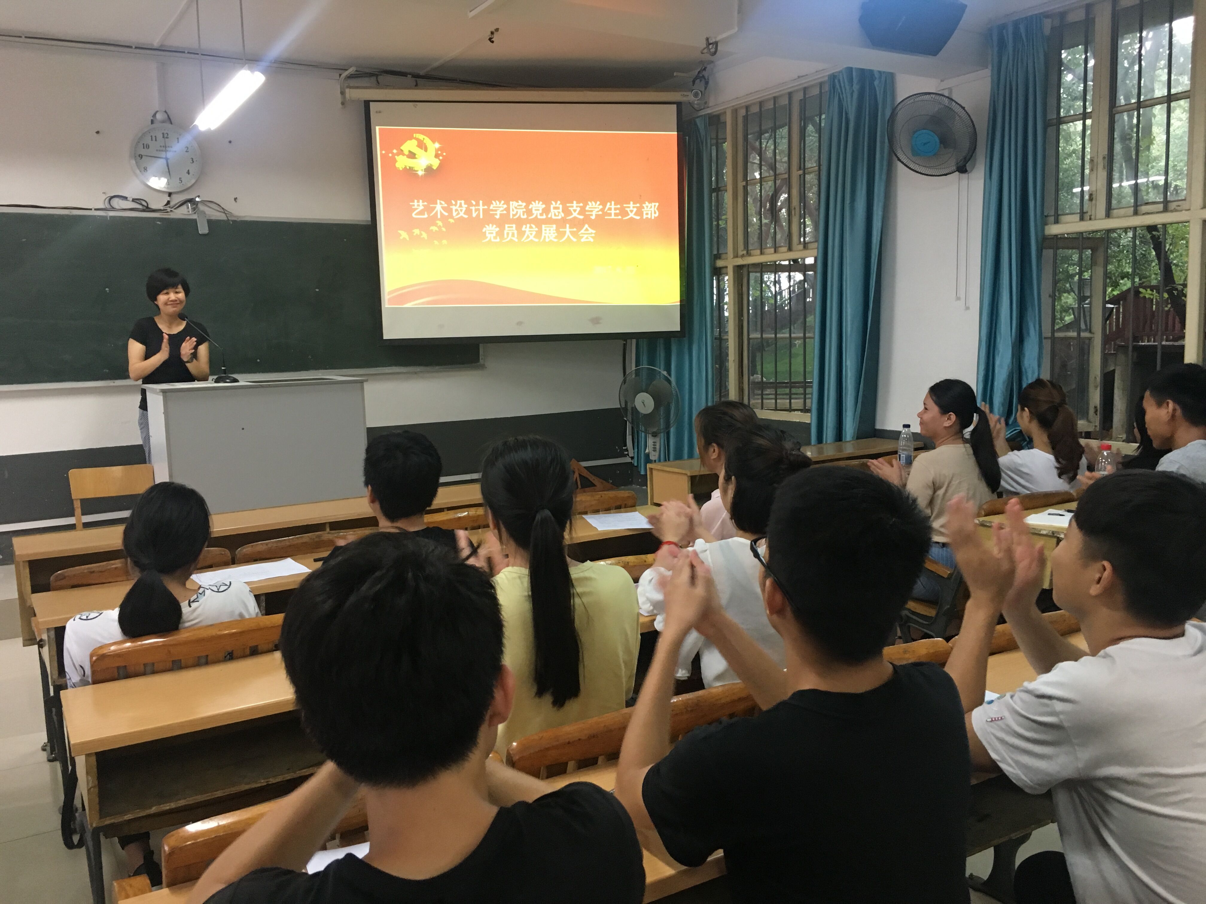 新闻网消息(文/艺术设计学院 曾静 图/艺术设计学院 白兰)近日,艺术设计学院党总支学生支部2015级党员发展大会在文化楼205教室顺利召开。学院党总支书记王慧、教工支部书记朱裕、宣传委员雍佳、教师党员廖桂英、黄斌、刘滔、胡艺华,学生支部书记白兰、组织委员程志媛、宣传委员曾静、学生党员黄秀闹出席了本次会议。