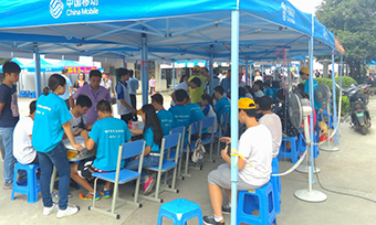 六个二级学院基本上集中在至善园一楼的开阔地“摆摊”迎新,女生们则在C区睿智园报到,机电工程学院新生则在3号报到点。这是学校针对往年迎新工作人员、车辆过于集中,导致交通拥堵、新生报到注册排队时间太长的情况,今年学校使出“洪荒之力”,为节约新生报到时间、简化新生报到流程、尽可能地方便新生而做的人性化服务的一个改革,就是希望在离学生宿舍最近的地方报到、注册、缴费,让新生们在最短的时间早些安顿下来。