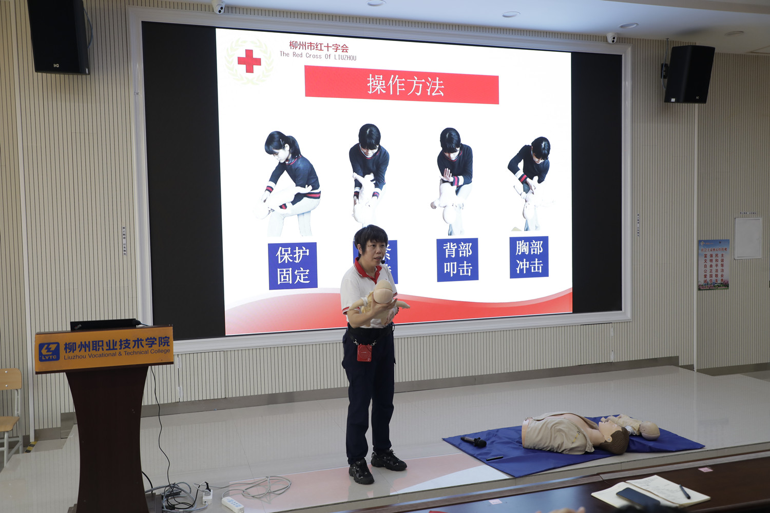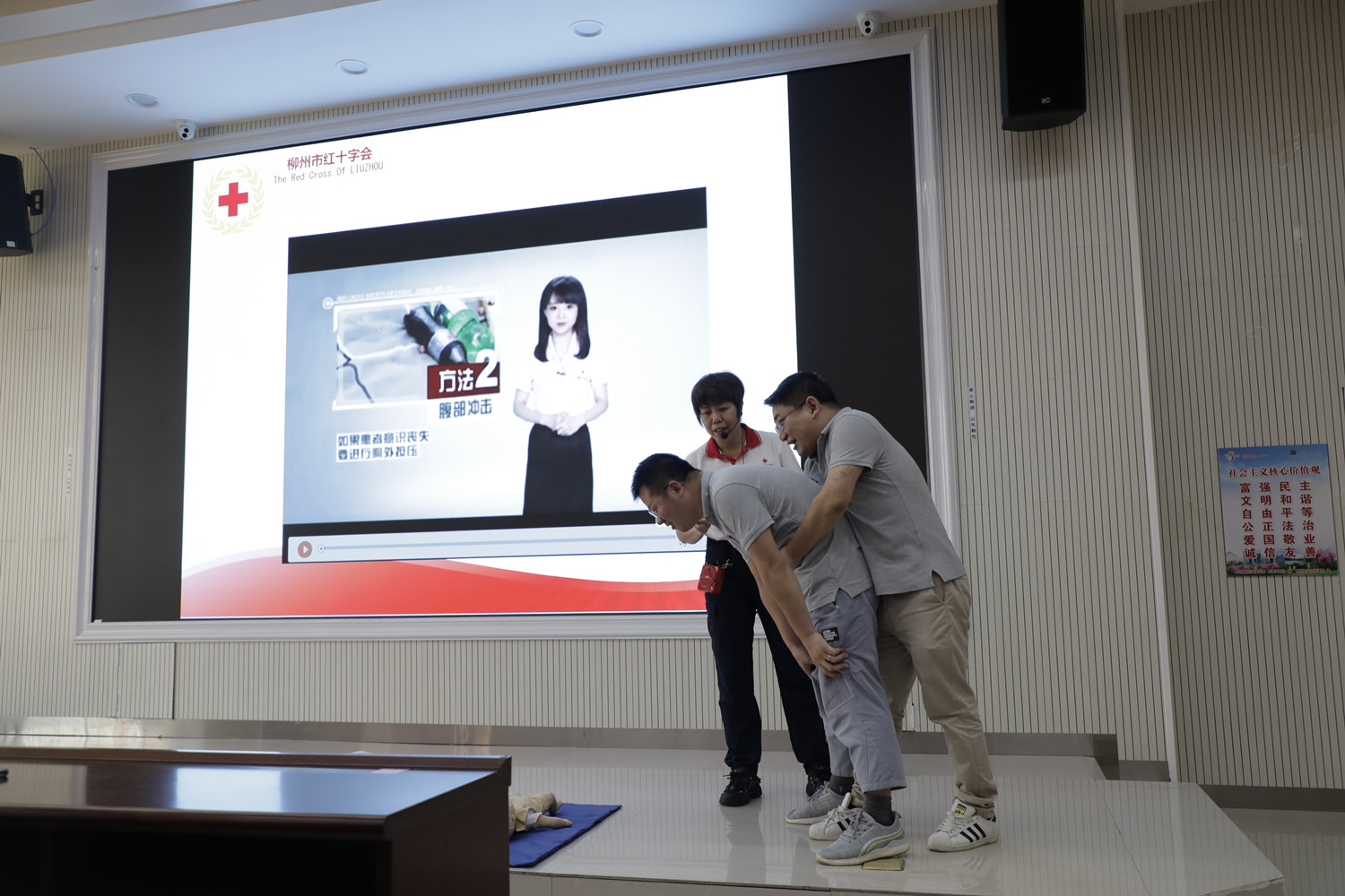 此次培训邀请柳州市十字会应急救护培训师资为米乐官网教职工进行应急救护培训,采取理论知识讲解与救护技能实际操作相结合的形式,培训讲师对应急救护的原则、海氏急救(气道异物梗阻)、烧烫伤、动物咬伤(蜂、红火蚁、犬、蛇)等知识进行了系统讲解,并重点演练了海氏急救(气道异物梗阻)操作。授课过程中,教师们认真听讲并配合培训老师的讲解操作,在练习环节,大家通过自救、两人一组互救两种方式进行海氏急救(气道异物梗阻)操作练习,培训团队的老师耐心指导纠正教师的动作,课堂气氛活跃,教师们积极互动和抢答。