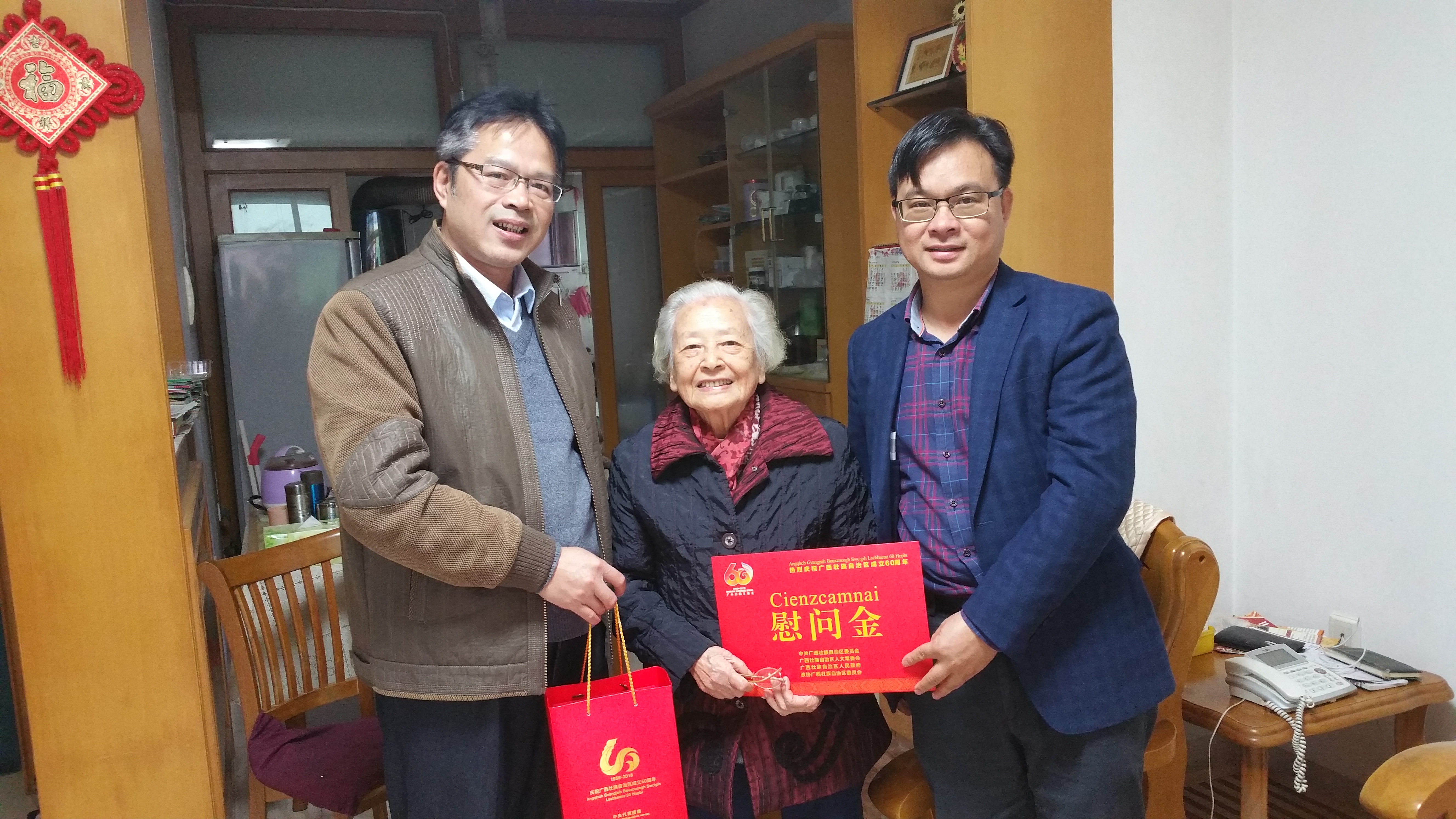 学校工会主席冉福松,副主席覃纪武,接通知后按照文件精神、分别于12月7日和12日将纪念章、暖心杯和慰问金上门送到姜新延、陈莹两位离休老干部家。已经九十四岁高龄的姜老,激动地写下:感谢党中央、自治区党委对我们离休老同志的关怀和爱护;感谢柳州市老干部局和学校领导在寒冬的天气及时专程把纪念品、慰问金送到家。我虽然年老离休,我仍要不忘初心、坚定信念、遵守党规做个合格的共产党员。