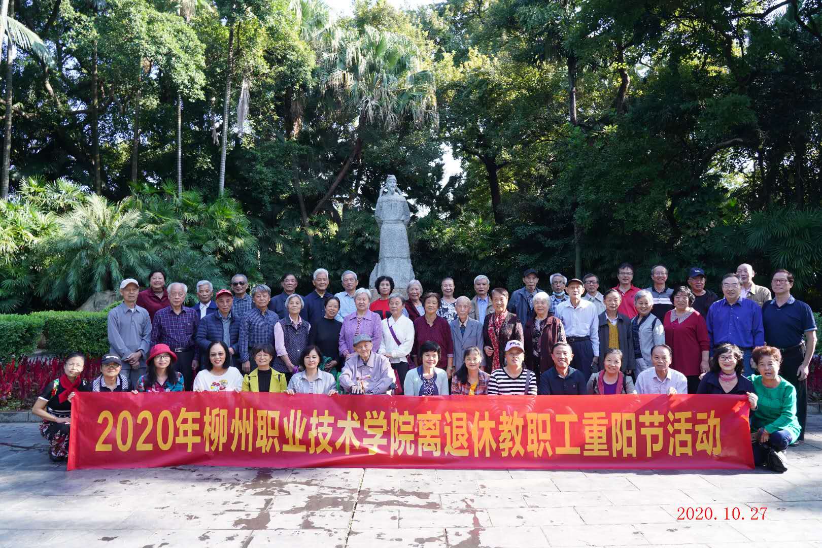 岁岁重阳,今又重阳。在举国上下纪念中国人民志愿军抗美援朝出国作战70周年之际,又迎来了一年一度的重阳节、敬老节。为弘扬中华民族“敬老、爱老、孝老”传统美德,学校工会、离退休管理科,根据学校实际情况,10月26-29日分别在柳侯公园、大龙潭公园、西江宾馆、雀儿山公园四个地方,分片区开展全校离退休教师重阳节活动。