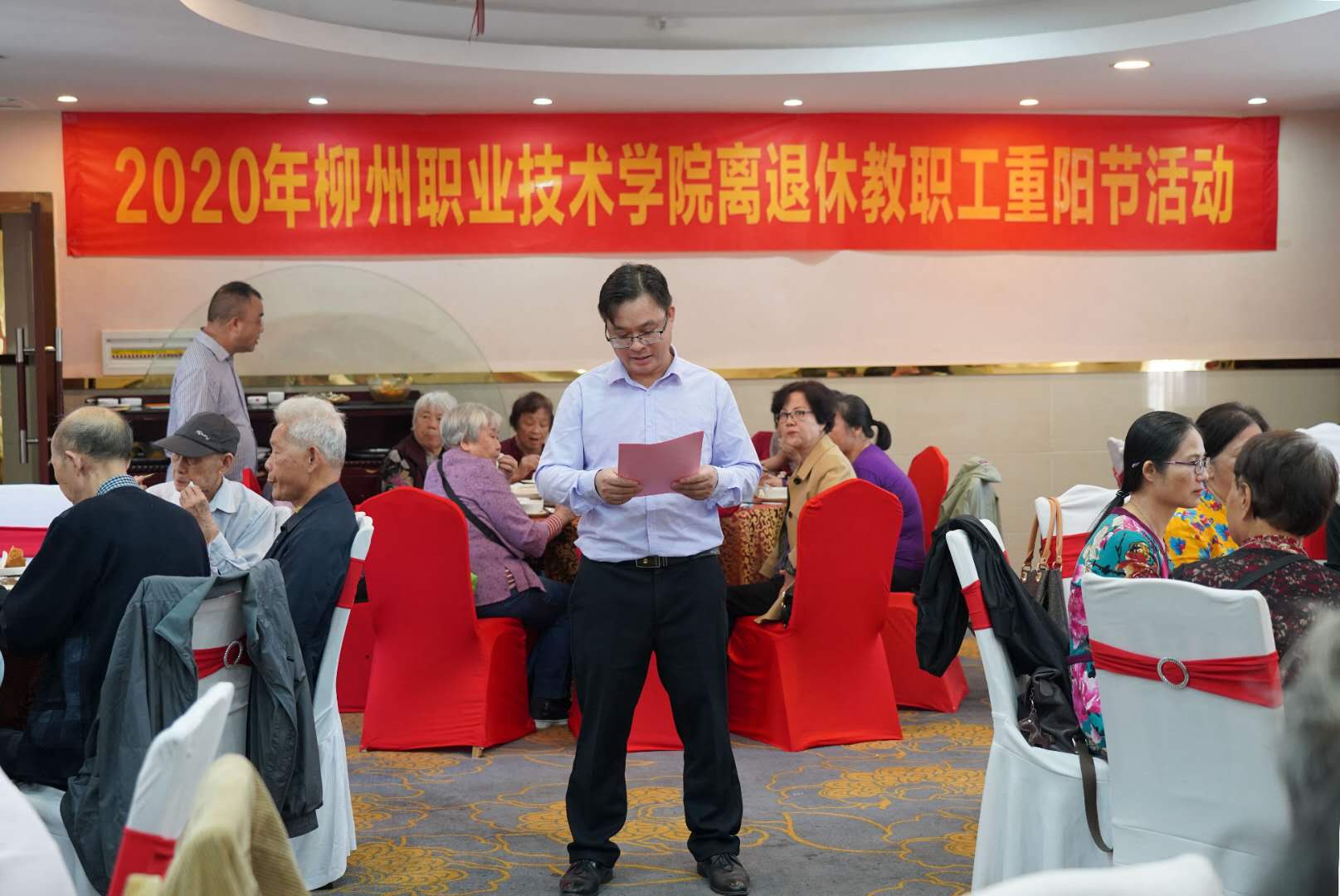 校党委委员、总会计师、工会主席冉福松,向老同志们通报了最近学校党委人员变动和近年发展的情况。他在讲话中指出:学校的发展渗透了老同志的无数心血和汗水,学校的一砖一瓦都铭刻着他们献身职教事业的功劳,他们至始至终默默无闻地工作,兢兢业业、踏踏实实地谱写柳职院的历史。也正是他们勤劳务实、奋勇争先的精神,创造了柳职院一次又一次的辉煌。在他们这种精神鼓舞下,现在的柳职人正沿着他们的足迹努力前行。