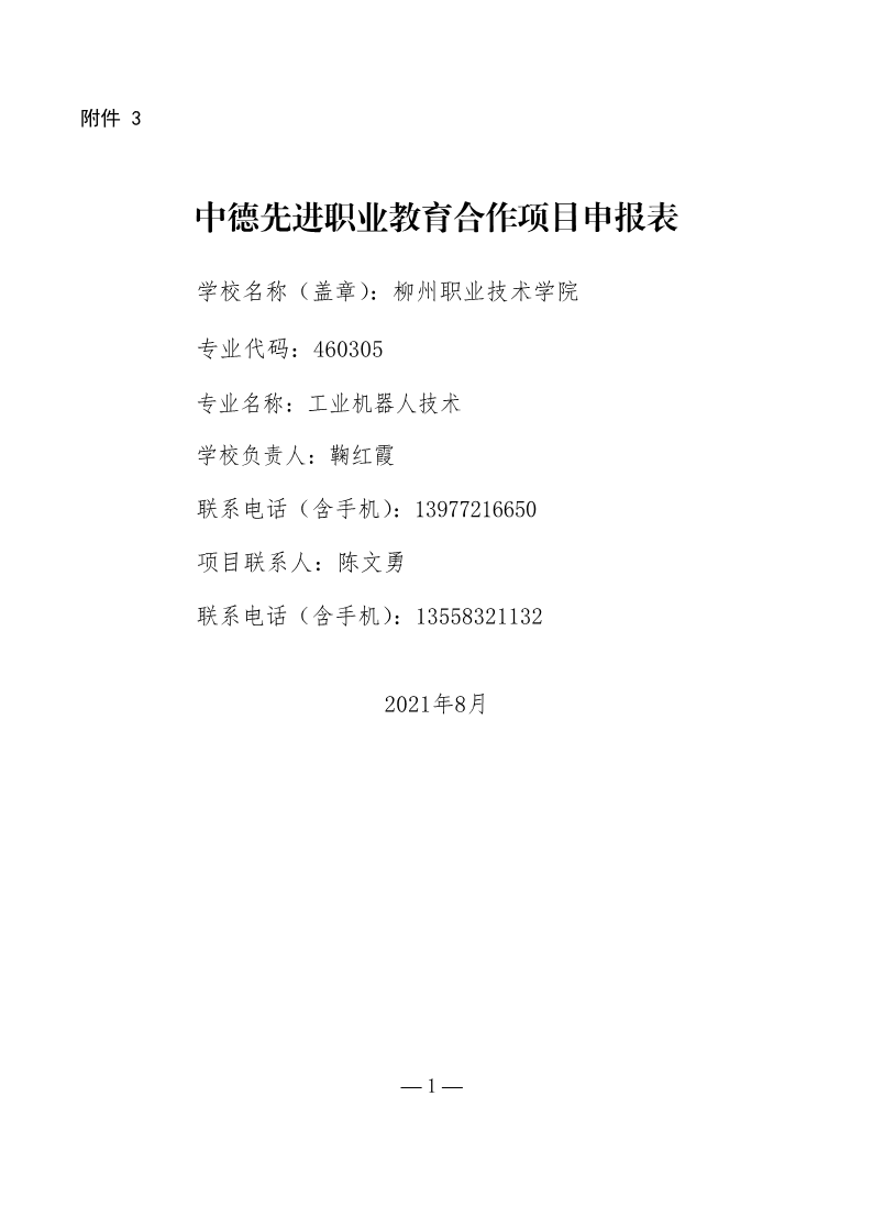 申报表2:中德先进职业教育合作项目申报表-工业机器人技术