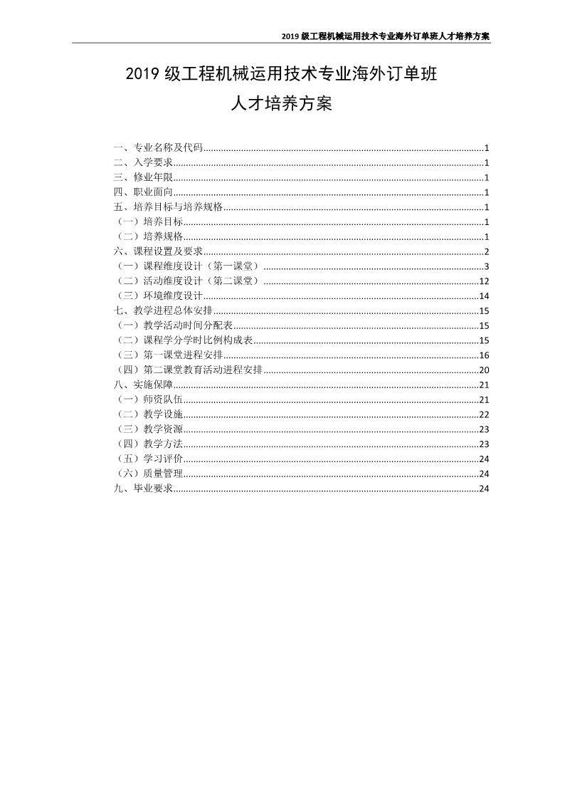 2019级工程机械运用技术专业海外订单班人才培养方案