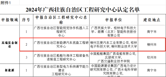 新闻网消息(文/机电工程学院 孔凡校、科研处 赵萃 图/科研处 赵萃)近日,据《关于印发2024年度广西壮族自治区工程研究中心认定名单及评价结果的通知》(桂发改高技【2025】16号)文件知悉,由柳州五菱汽车工业有限公司牵头,米乐官网参与共建的“广西壮族自治区新能源汽车底盘工程研究中心”通过批准认定。