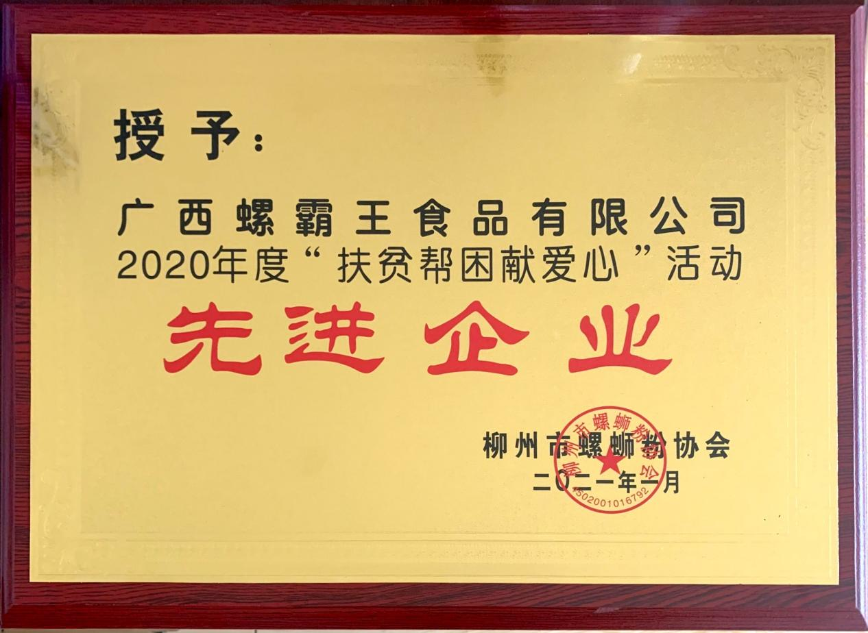 2021年1月被授予2020年度“扶贫帮困献爱心”活动先进企业