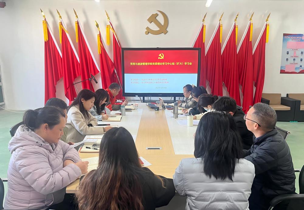新闻网消息(文/贸易与旅游管理学院 陈卉 图/贸易与旅游管理学院 徐娟)2025年12月15日上午,贸易与旅游管理学院党委理论学习中心组(扩大)学习会在崇文楼514会议室召开。学院党委书记陈芳主持会议,党委委员参加会议,各党支部书记、学院科级干部列席会议。