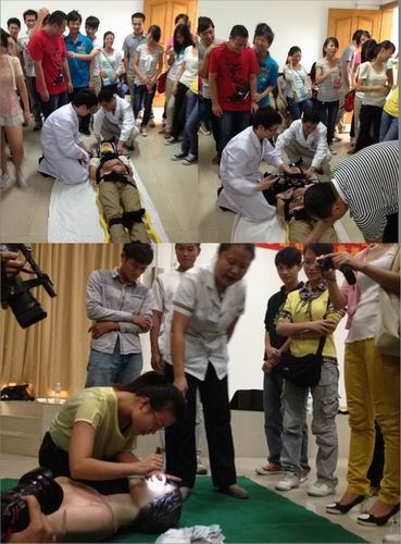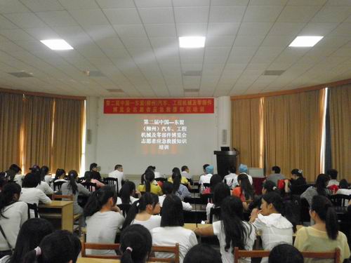 为了进一步加强该系志愿者急救安全常识,强化汽博会志愿者队伍建设,提高专业知识水平,9月18日下午,该系林志红副主任、辅导员吴鹏老师组织143名汽博会志愿者前往柳州急救中心参观学习。急救中心主任以及医生首先带领志愿者参观了急救中心,详细介绍了相关急救、救援器材和装备的作用、使用范围及方法,并对部分急救方法进行了现场展示,指导该系学生进行了包扎、担架使用、人工呼吸等急救常识学习。随后,消防志愿者们亲身体验了对部分装备器材的使用,如使用绷带、三角带、假人人工呼吸、担架拆装等。
