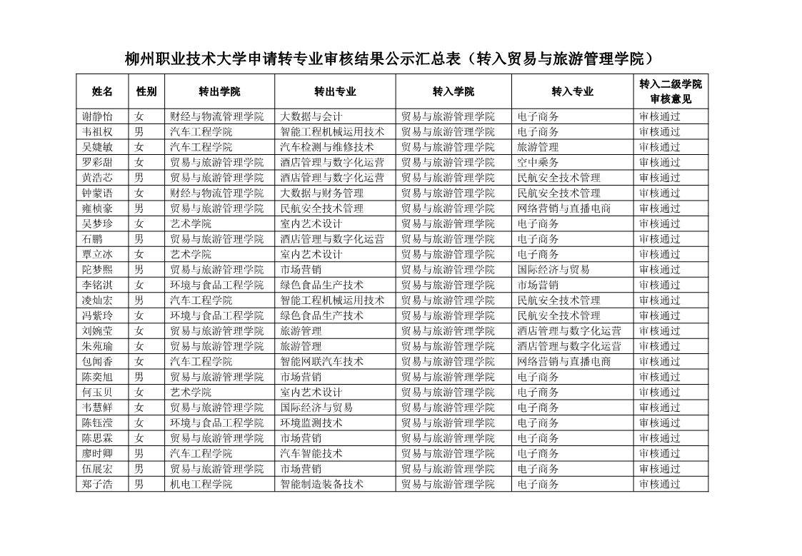 贸易与旅游管理学院关于2024级学生转专业申请审核结果的公示