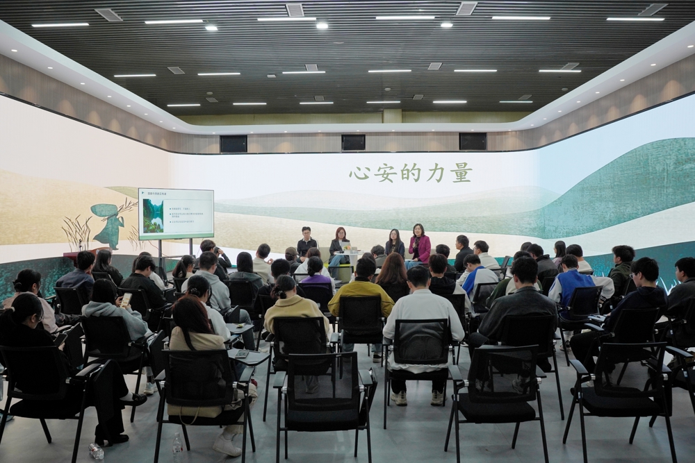 活动以轻松互动开场,主讲嘉宾围绕《正念:此刻是一枝花》等经典书目,结合情绪科学核心原理,用贴近校园生活、贴合学生日常的鲜活案例,深入浅出地解读正念的核心内涵,帮助学生理解正念在情绪调节、压力缓解中的重要意义。现场穿插正念饮食、正念运动、正念倾听等沉浸式体验,引导大家觉察身心、专注当下,掌握简易正念技巧。嘉宾们还针对学生宿舍相处、情感焦虑等常见场景,指导同学们将正念思维运用到日常,并鼓励大家从“正念刷牙”“正念走路”等微练习做起,践行正念生活。整场活动氛围融洽,同学们积极参与、认真体验,在互动与分享中交流感悟、收获成长。