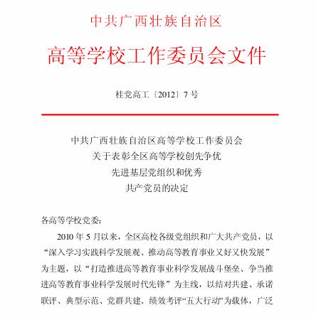 公共基础部党总支荣获全区高等学校创先争优先进基层党组织荣誉称号