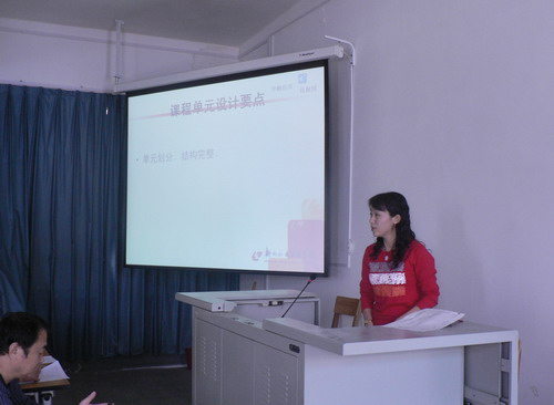 培训分为两部分,第一部分由陈芳副主任介绍了“高职课程的能力本位项目化改造” 对课程的单元教学设计和整体设计要求,阐述了公共基础课程改革的思路和具体做法,强调课程改造过程中要以学生为主体,突出能力目标、确定项目或任务载体;第二部分是由两位参加学院教师职教能力测评与课程改革专项培训的教学团队负责人和骨干教师上台展示各自课程“能力本位项目化改造”的课程整体设计和单元教学设计。培训结束后,各教学团队就各门课程如何进行项目式改造进行了热烈的讨论,根据“高职课程的能力本位项目化改造”要求修订了课程改造的思路。