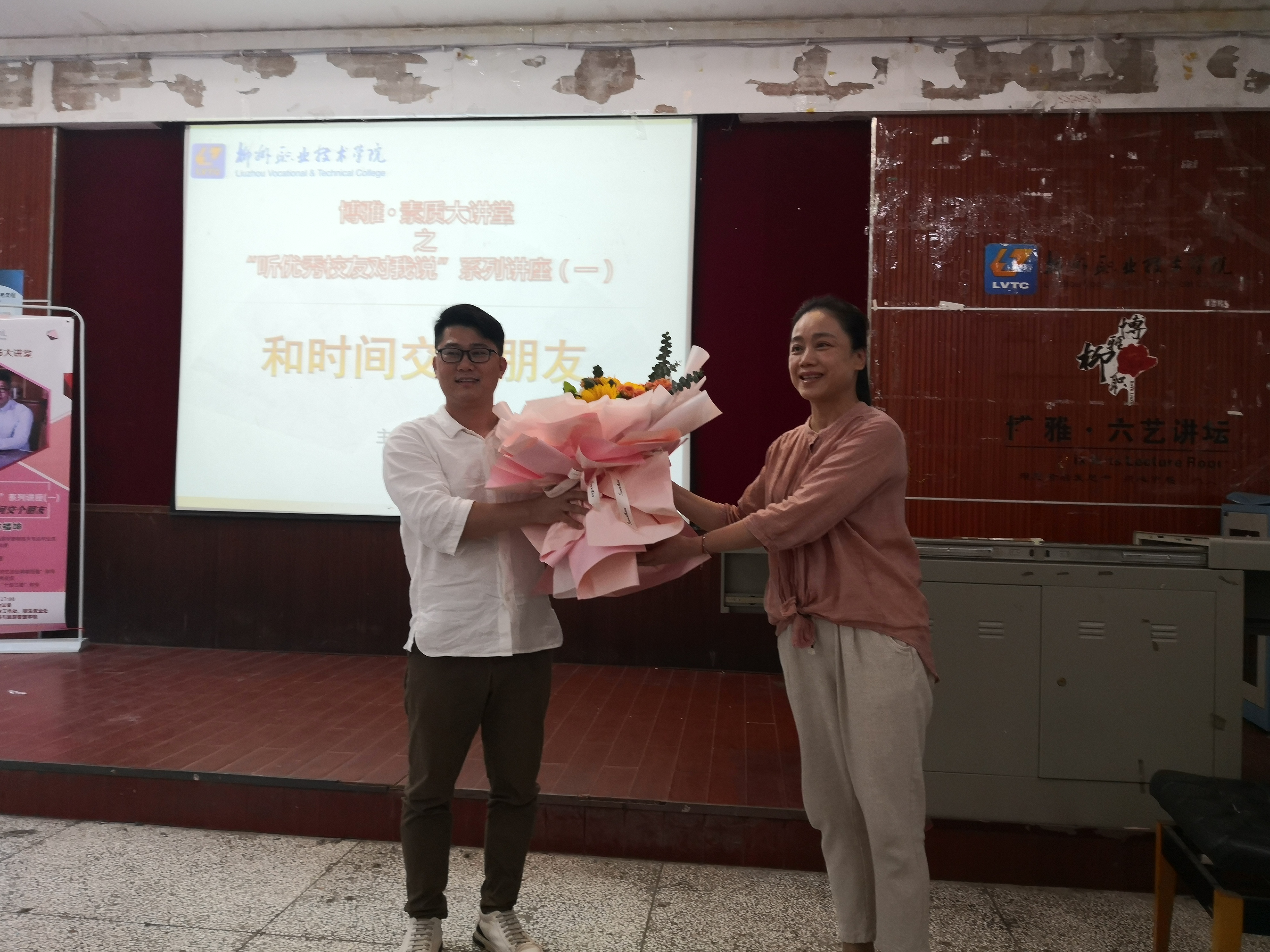 新闻网消息(文、图/贸易与旅游管理学院 梁彩虹)为树立榜样的力量,充分发挥优秀校友模范标杆作用,激励在校大学生成长成才,学生工作处联合招生就业处邀请优秀校友推出“听优秀校友对我说”系列讲座。2021年5月7日下午,“听优秀校友对我说”系列讲座第一讲于德馨楼101教室开讲,柳州职业技术学院2014届汽车检测与维修技术专业毕业生、柳州市民营企业协会第七届常务执委和柳州市青年企业家协会副会长的林福坤给社湾校区二级学院120多名学生带来了一场题为“和时间交个朋友”的讲座。招生就业处处长黄莉、学生工作处副处长崔智慧、招生就业处副处长杨小浒、招生就业处科长韦丽娜、学生工作处思政科长陆露出席并聆听讲座。讲座由学生工作处副处长崔智慧主持。