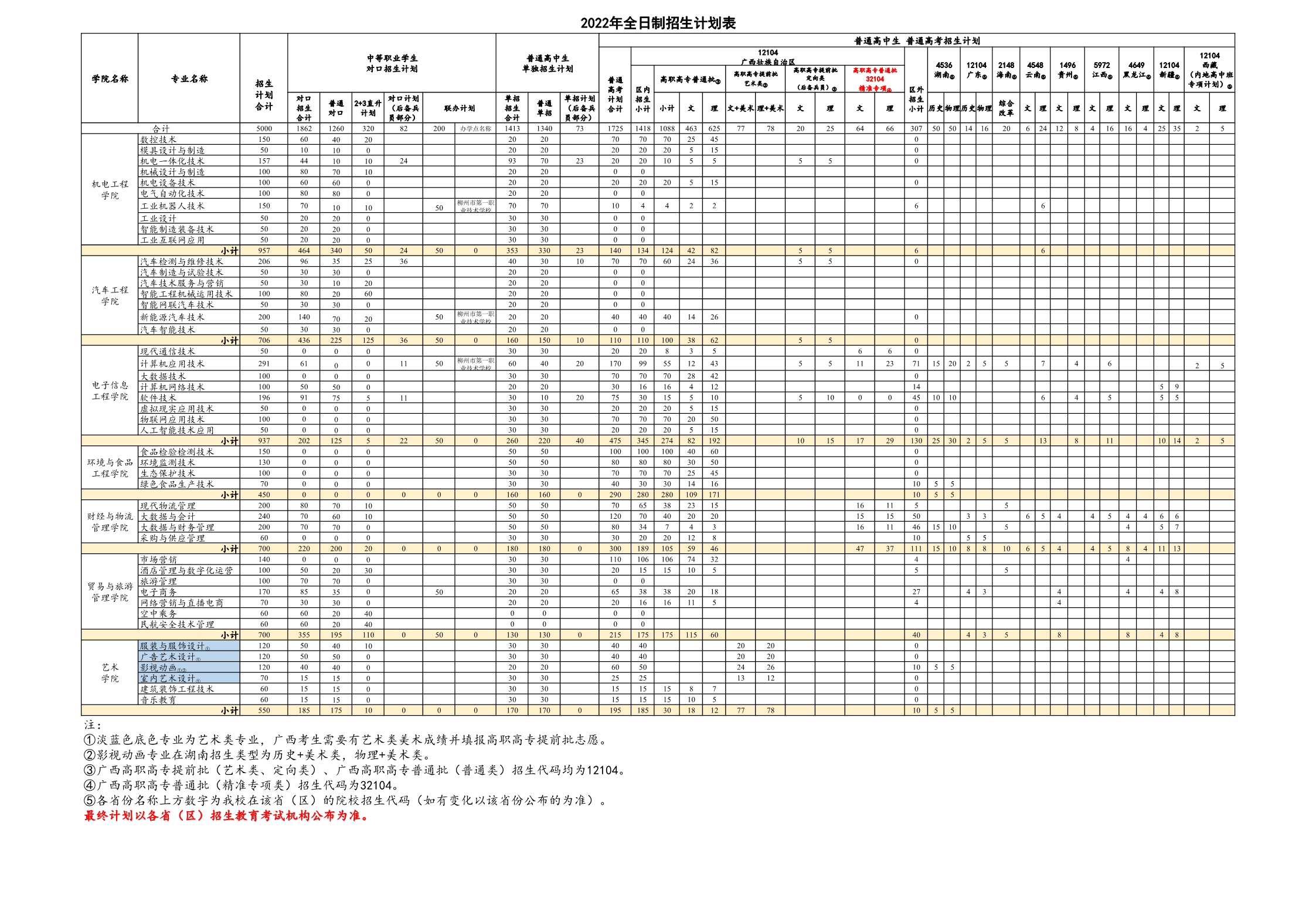2022年柳州职业技术学院全日制普通高校招生计划总表
