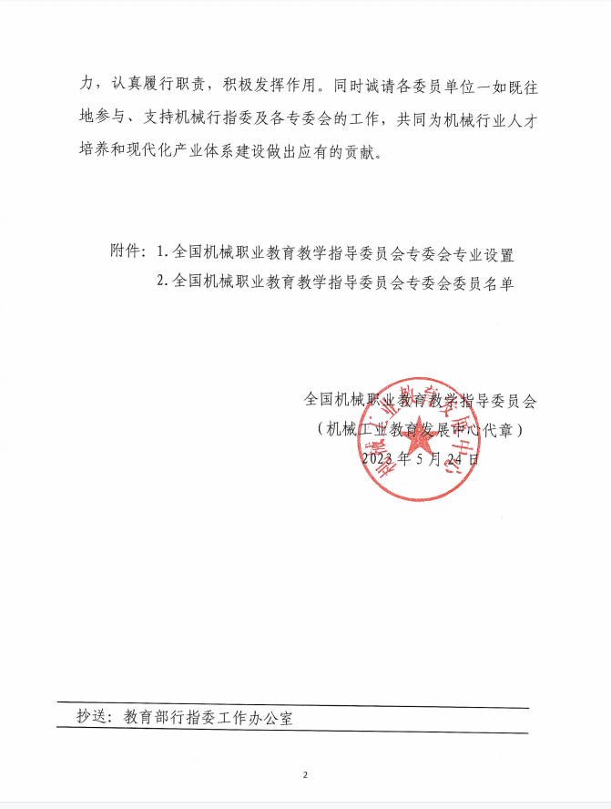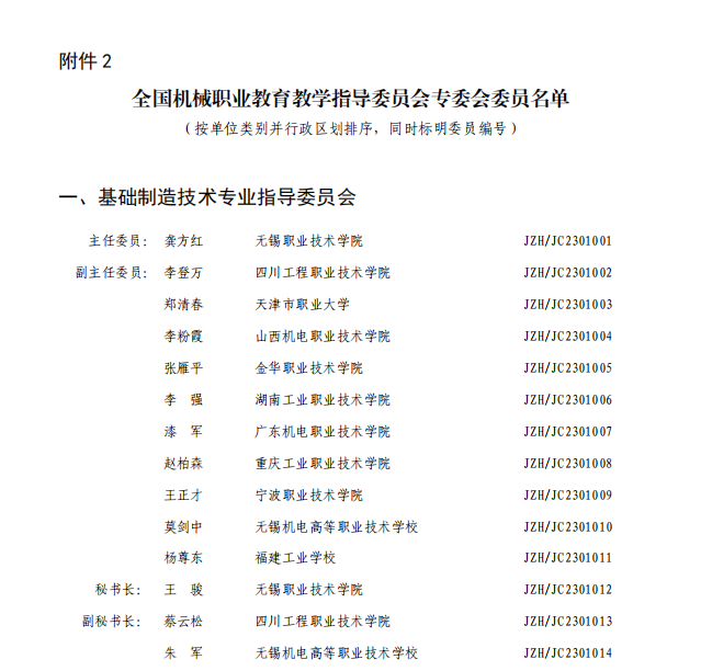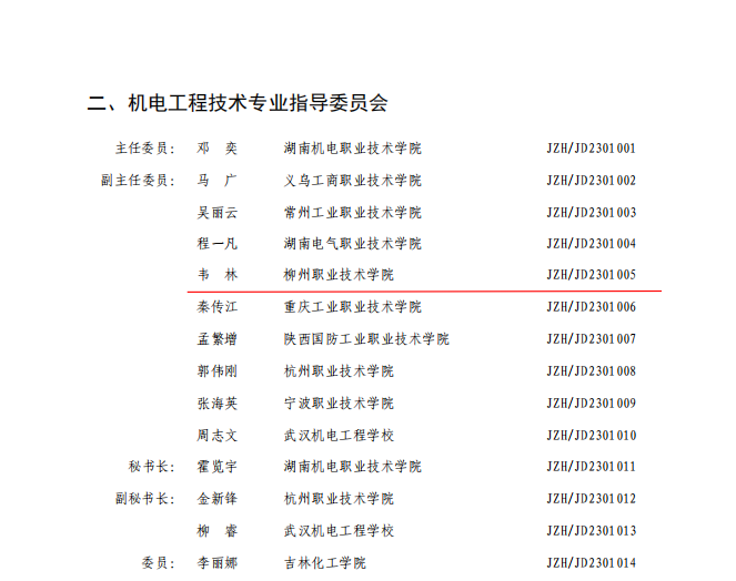 近日,《关于成立全国机械职业教育教学指导委员会专委会的通知》(机职指委〔2023〕2号)文件下发,米乐官网甘金明、鞠红霞、韦林、邱福明、陈文勇、王富春、甘达淅、邓其贵、关来德等9位教师进入全国机械职业教育教学指导委员会专委会人员名单。