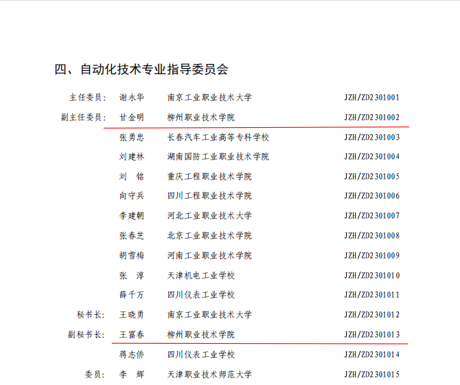 1 | 甘金明 | 自动化技术专业指导委员会 | 副主任委员 |