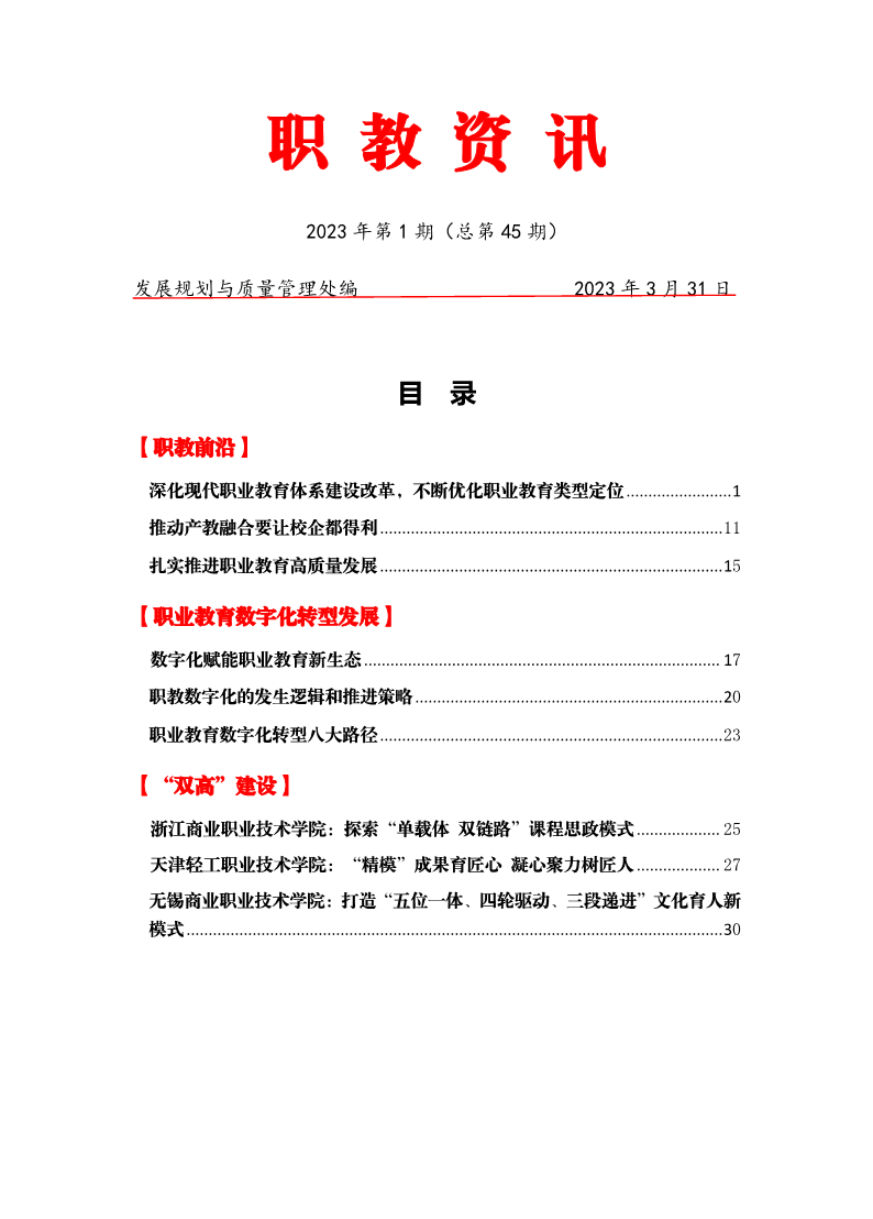 2023年第1期《职教资讯》(总第45期)